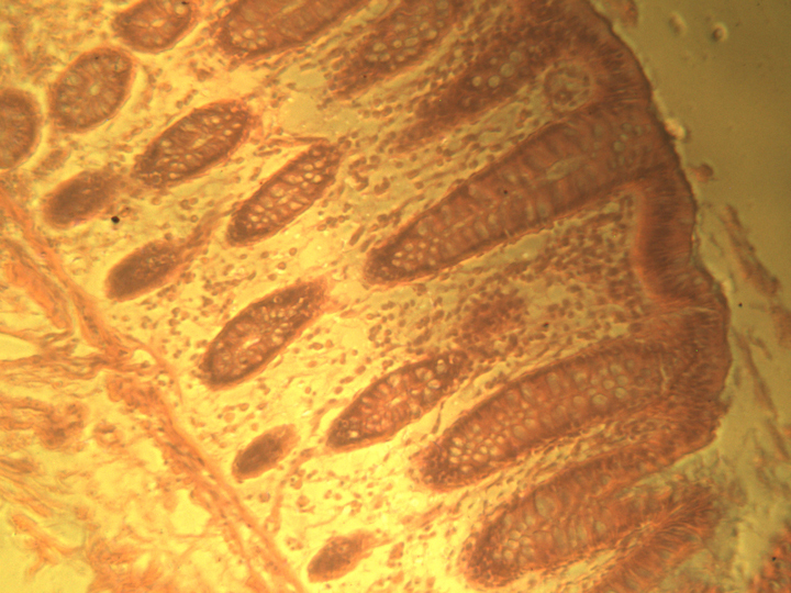 Note that the cells have epithelia at the top, and a muscular layer at the bottom.
