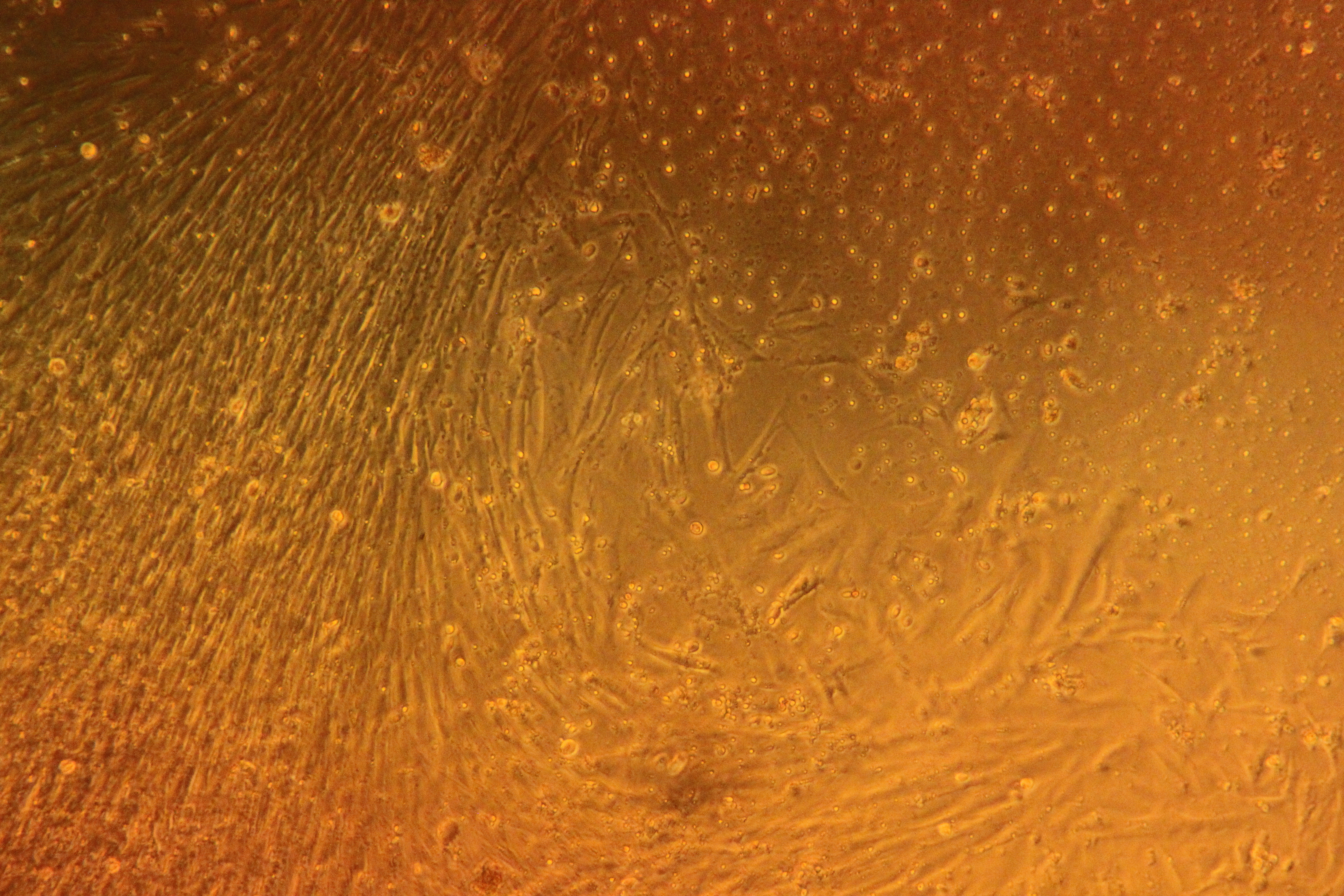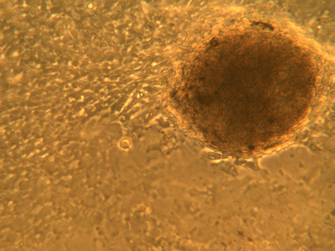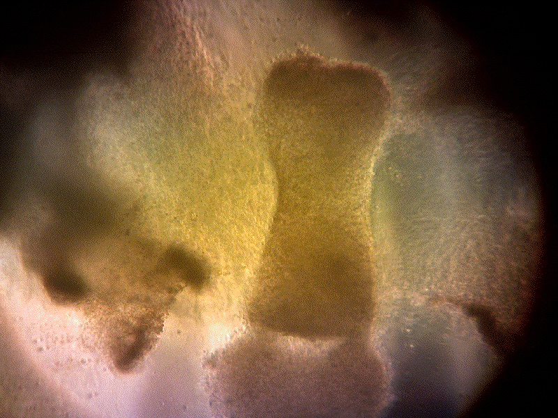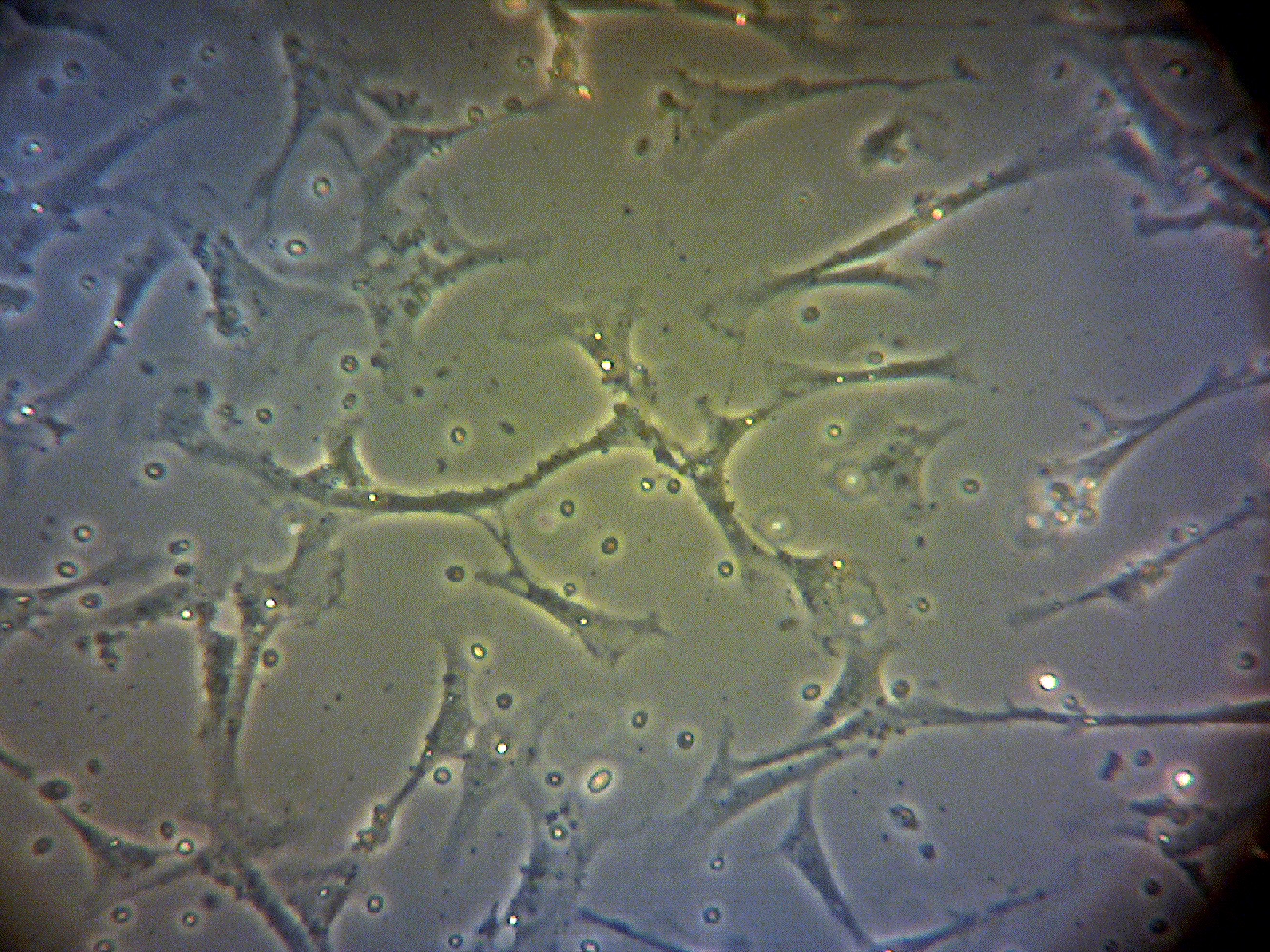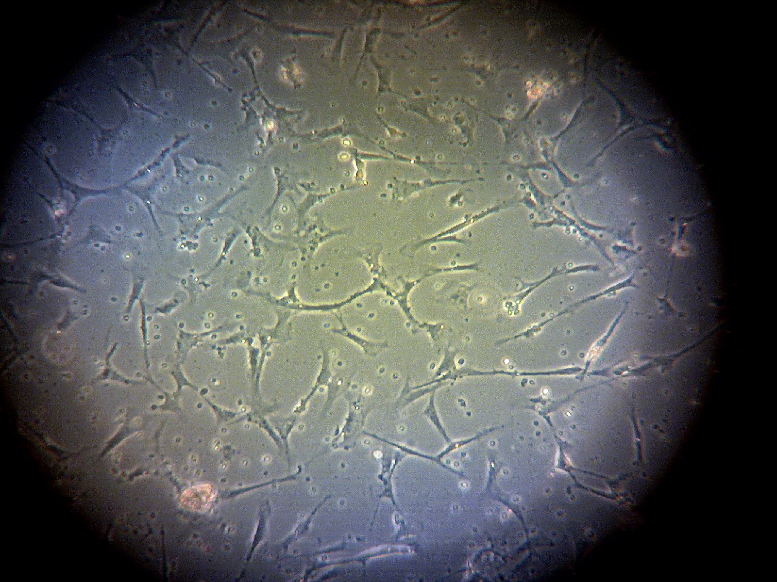 low-resolution photograph of leg cartilage, from which cells have migrated out