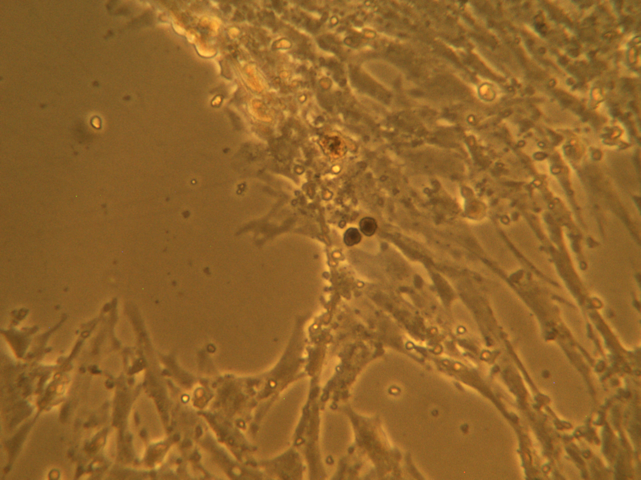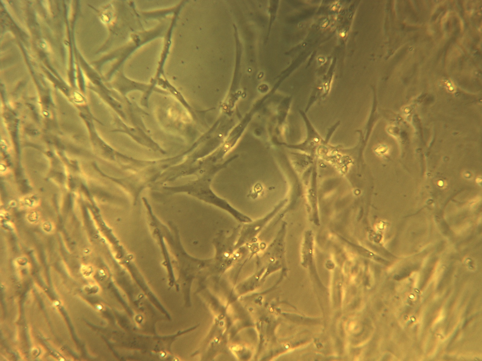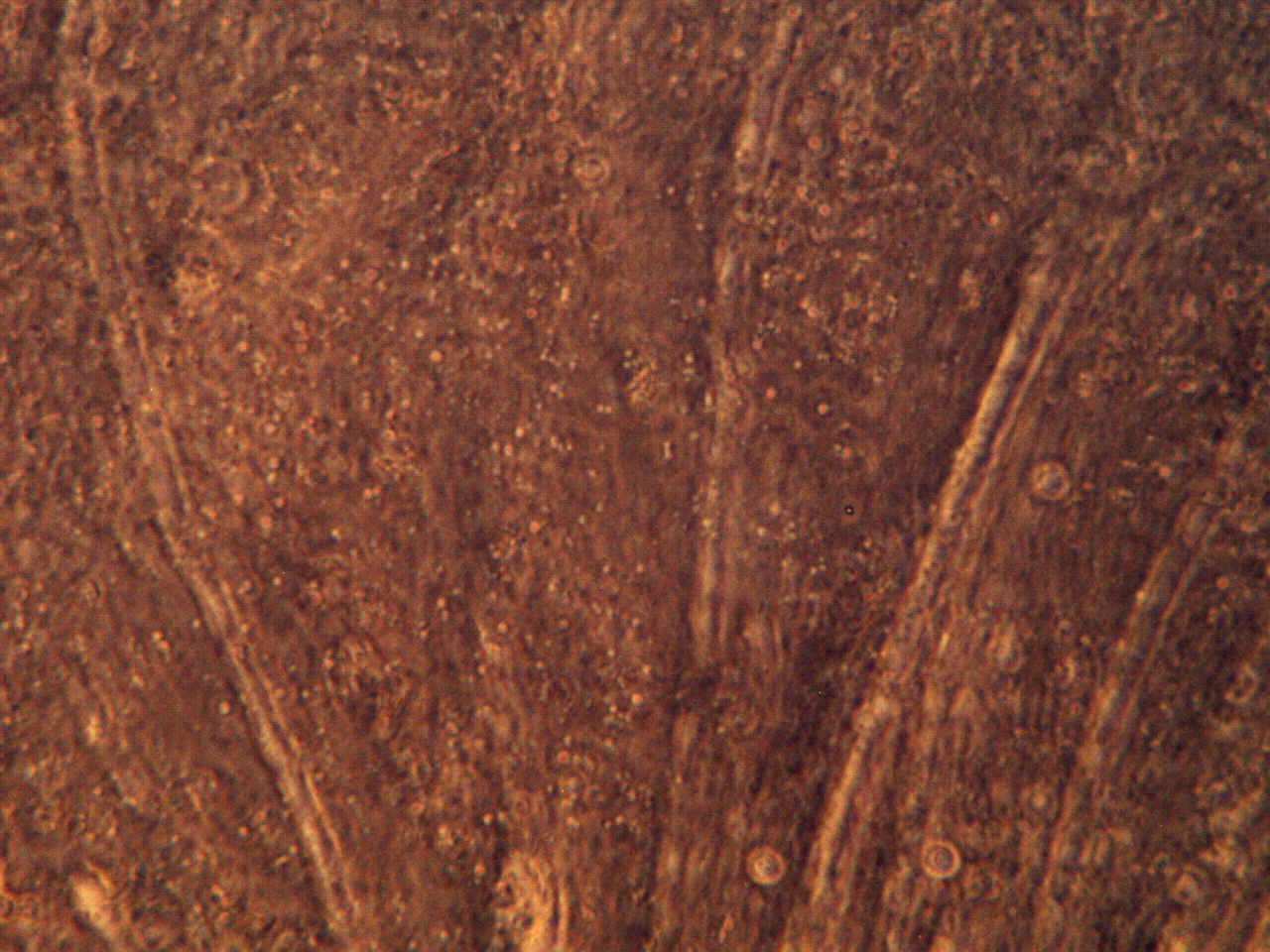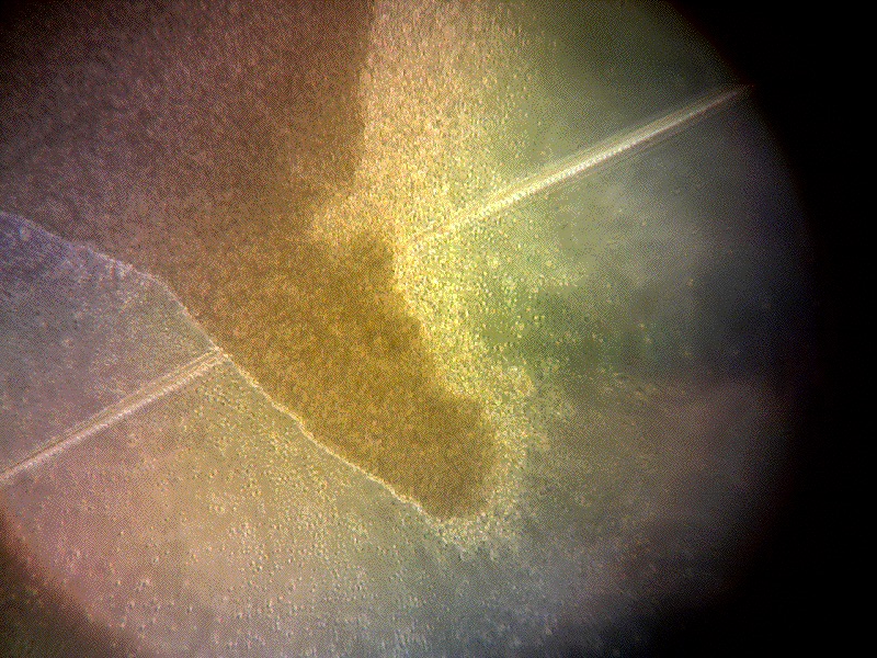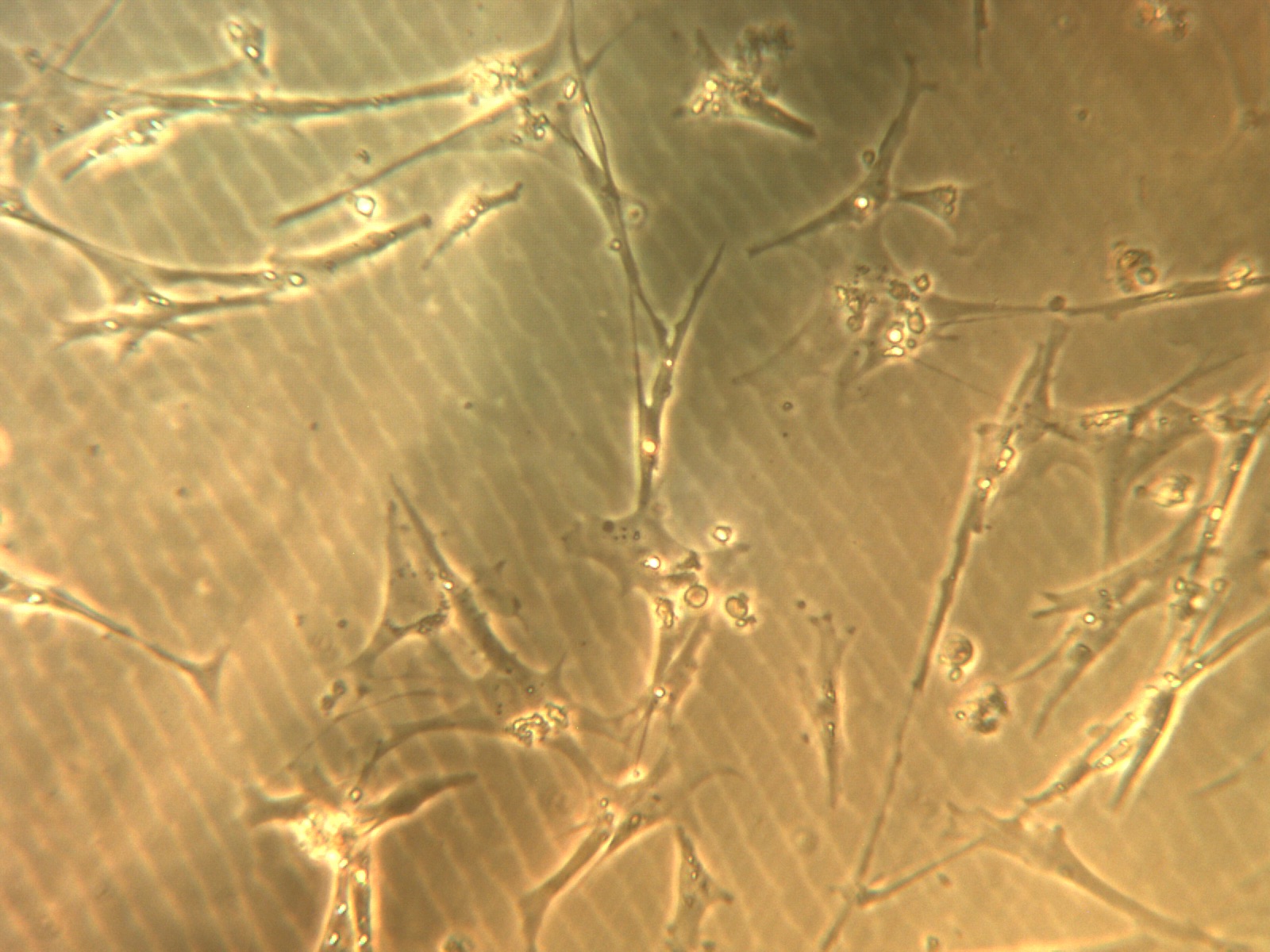 low-resolution photograph of leg cartilage, from which cells have migrated out