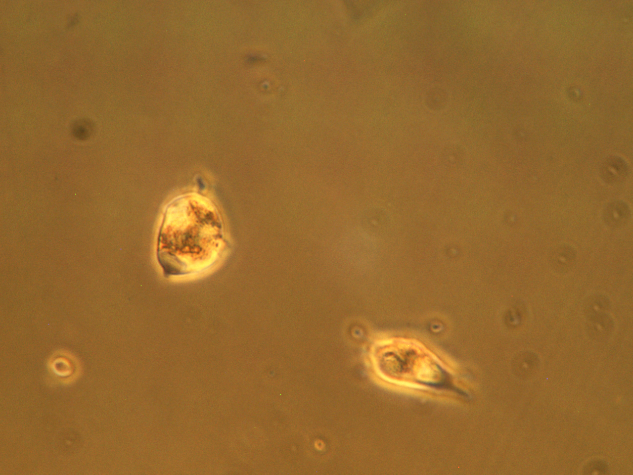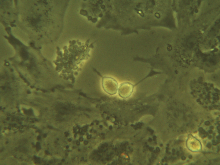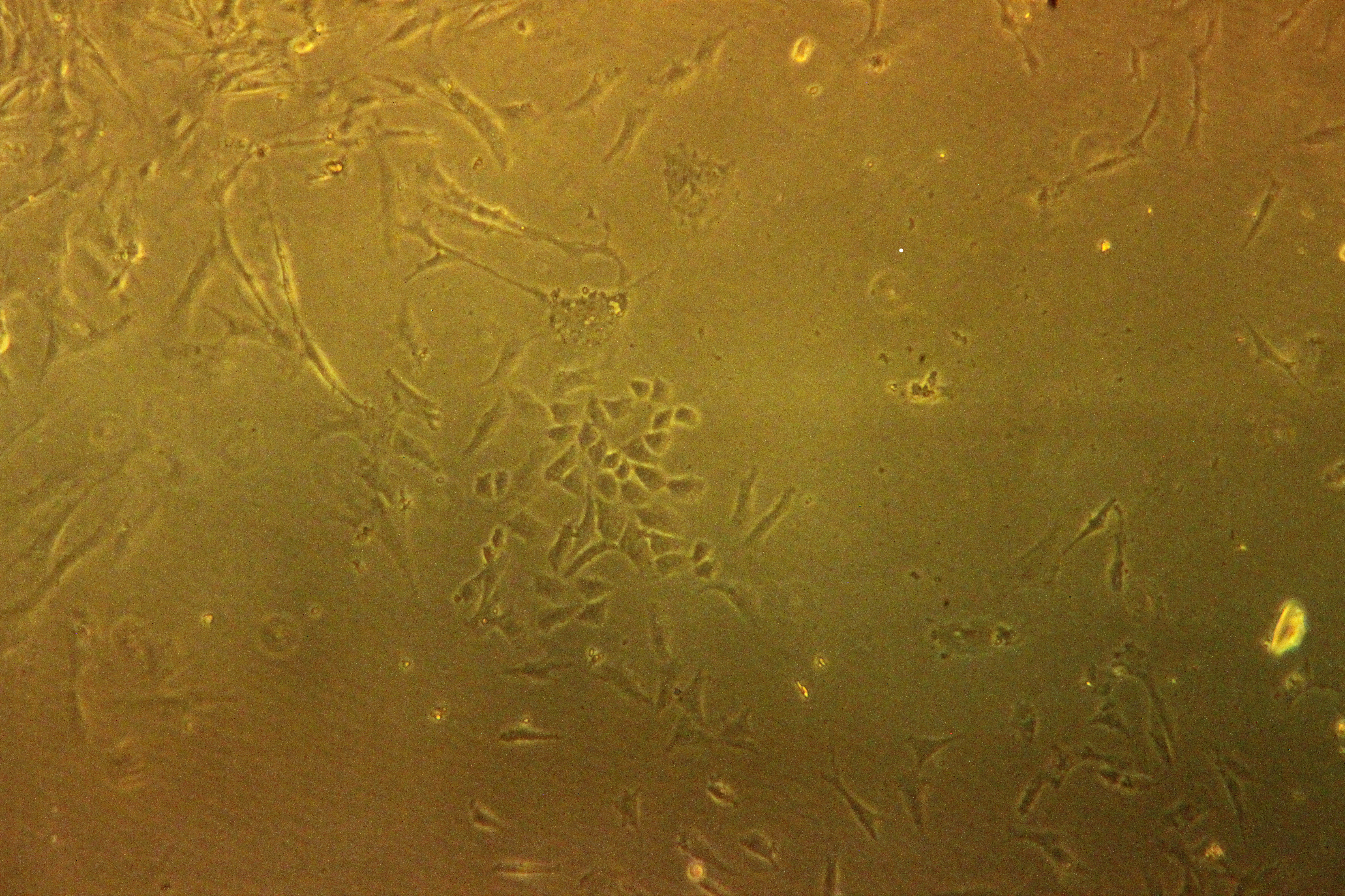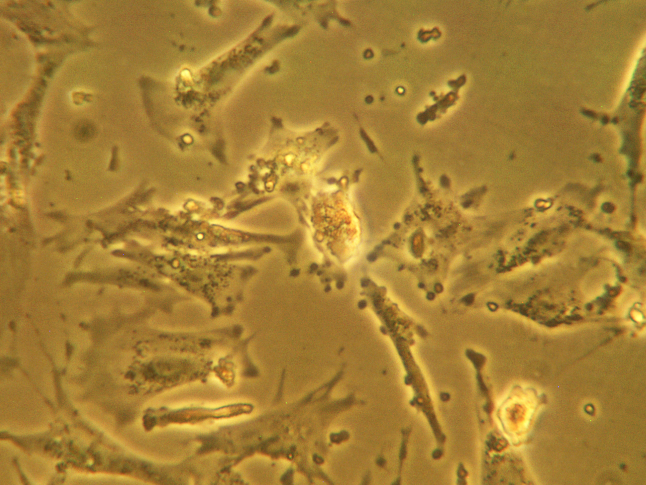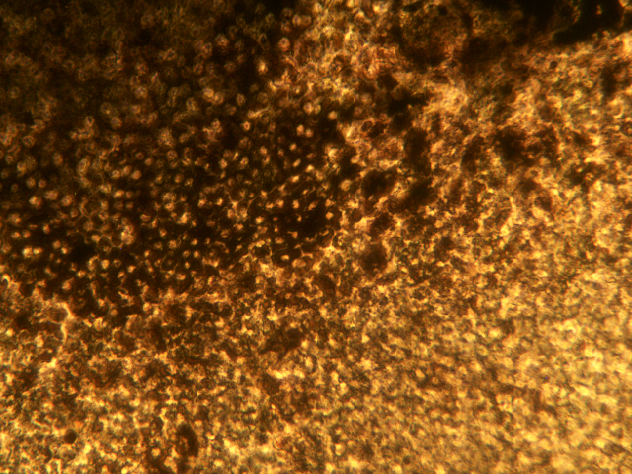 low-resolution photograph of leg cartilage, from which cells have migrated out